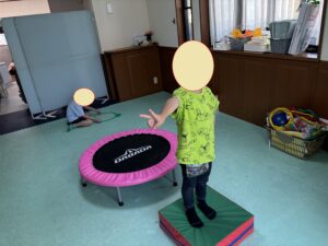 目の体操から始まり、トランポリン、ボールキャッチ、サーキットトレーニング、棒キャッチ、色ダンスなど