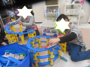 最近では平らな道だけではなく高さをつけて立体的なコースをつくるなど、子どもたちの想像力と工夫がたくさん見られます!