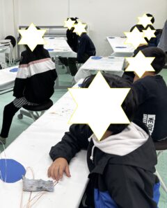 イメージ画像として宇宙の写真を見ながら、それぞれが想像する👽宇宙🛸をワイヤーを使って作り上げています。