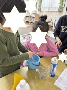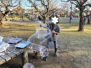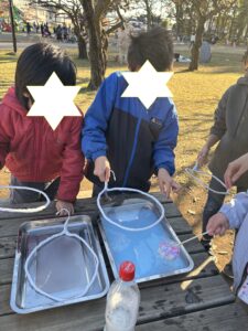 道具も液も自分たちの手で準備したシャボン玉🫧