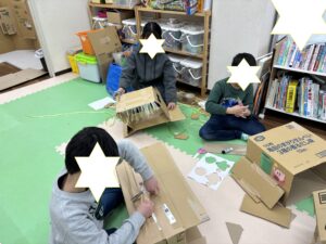 午前中はラジコンの操作練習、フラッグつくり、大会で使用する道具の工作活動を行いました♪